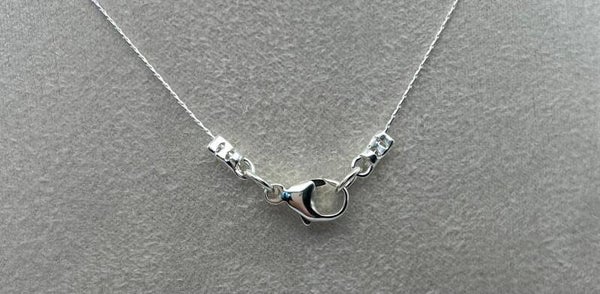 The necklace uses a sterling silver jump ring to attach the silver plated heart to a sterling silver delicate chain with sterling silver lobster clasp.