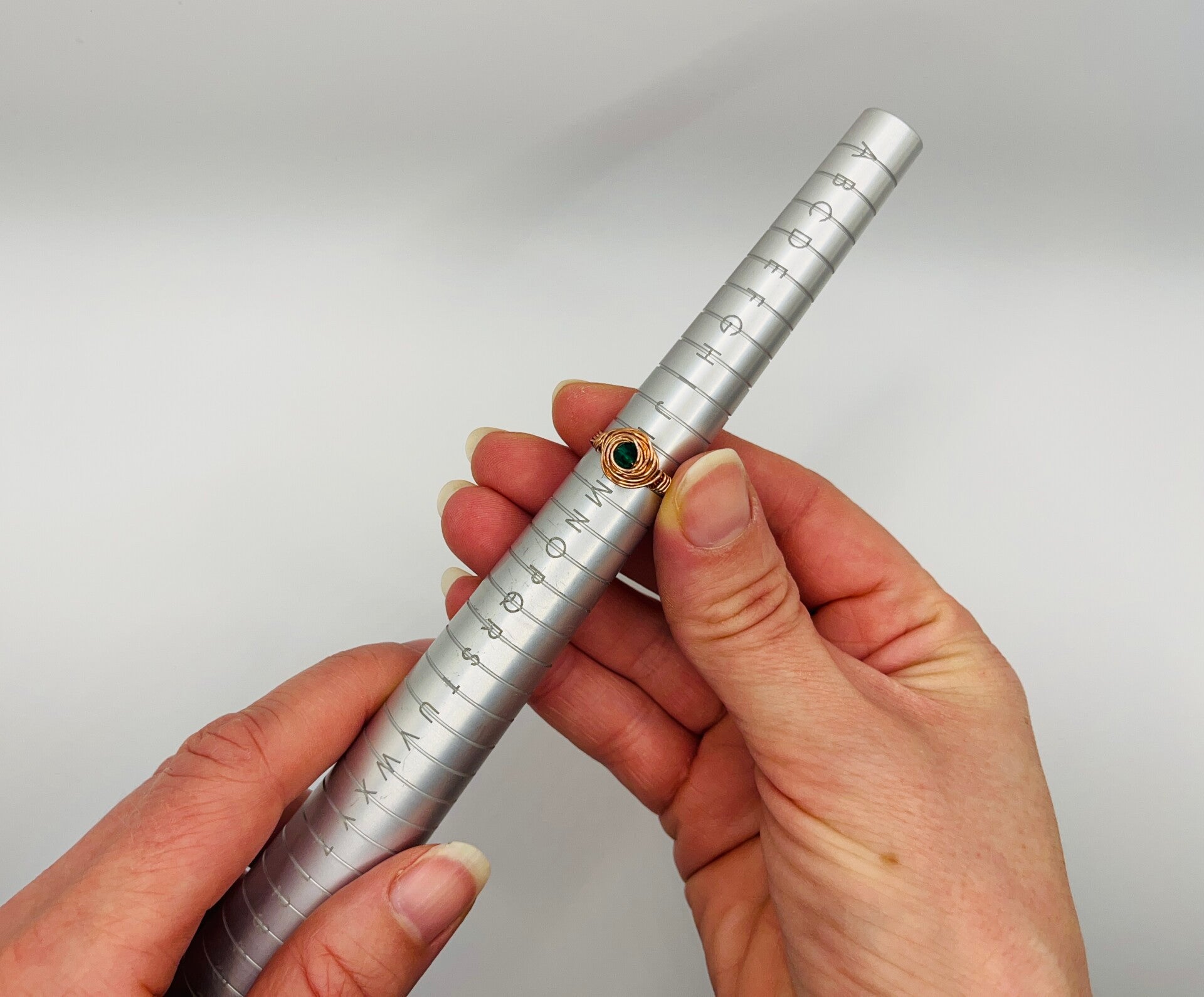 If you live locally to Brackley, why not arrange a short appointment to have your ring size measured by me. I can then make your ring to the specified size. If that’s not possible, then use the guide below to measure your finger and find the UK size on the chart.